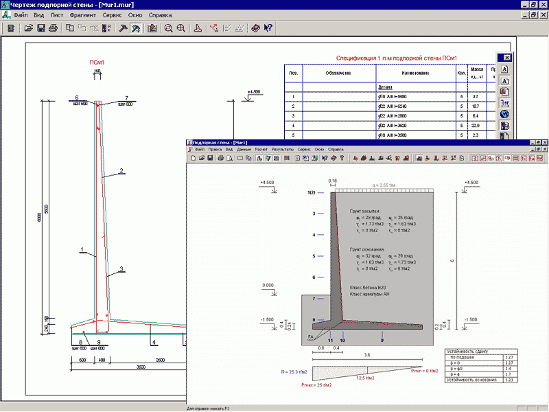BUILDING module. Analysis and design of reinforced concrete elements. Analysis results in the form of working drawings.